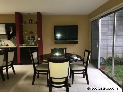Casa en excelentes condiciones, cocina integrada con acabados modernos y sobre de granito. Tiene un jardín hermoso y amplio. El condominio cuenta con vigilancia 24/7, se vive en un ambiente muy familiar, se aceptan mascotas. La ubicación es ideal para salir a las vías principales de comunicación ademas cuenta con infinidad de servicios cerca (centros comerciales, bancos, escuelas).