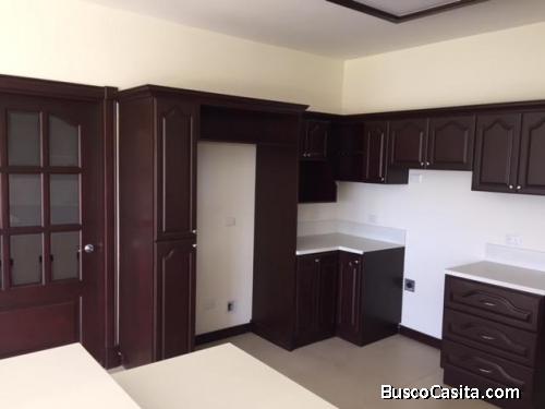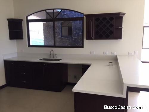 Casa completamente nueva de una planta con 312m2 construidos, muy bien distribuida, en un lote de 812m2. Tiene una sala comedor amplia, terraza grande, cocina y sala de TV muy amplias, alacena, y acabados de muy buena calidad. Tiene 4 dormitorios mas cuarto de servicio, 4.5 baños en total, incluyendo el baño de visitas, acabados de lujo, techos altos y 100% block. San Isidro de Heredia