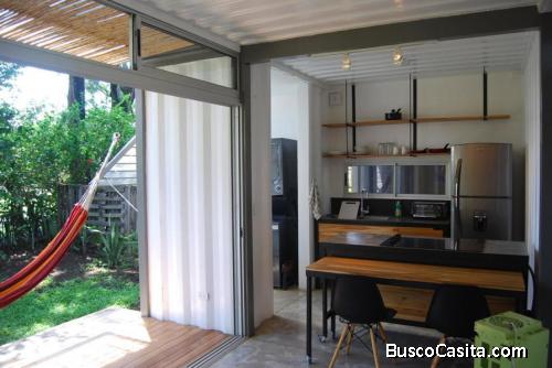 Novedoso Apartamento Ecológico en extraordinaria ubicación en Santa Ana Lindora. En primera planta el área social sala-comedor y una bella terraza con vista al patio privado con zacate, un baño social. Luego la cocina parcialmente equipada y cuarto de Pila con centro de Lavado en Torre. En segundo Piso una amplia y cómoda habitación con Cama queen y espaciosos closets.