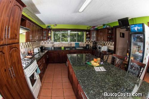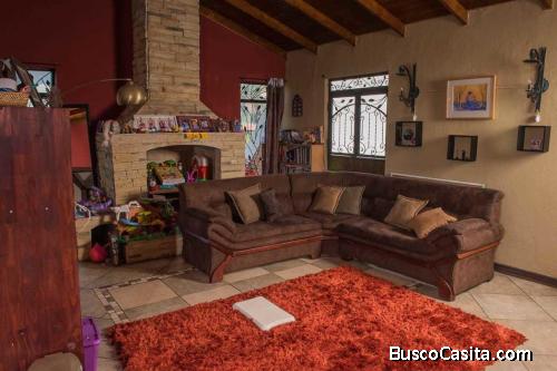 Venta de amplia y espaciosa casa, con acabados de madera, techos artesonados, finos detalles en madera, casa con concepto abierto, con una isla en la cocina amplia y sobres de granito, el mueble de cocina con muchos gabinetes para almacenar, con área de lavado grande, hermoso patio interno integrado a la sala, comedor y cuarto de tele, con una preciosa chimenea en el segundo piso.