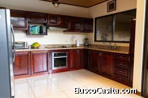 Todos sus muebles de cocina en madera fina y en general en excelente estado (paredes de concreto, pisos en porcelanato, entre otras condiciones).
