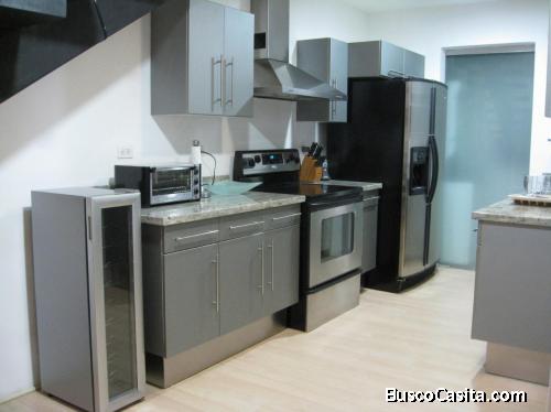 Moderna casa estilo townhouse con áreas sociales integradas. Dormitorio principal en segundo piso con walkin closet y área de estudio con sofacama. Área social con doble altura que permite construcción de un segundo dormitorio. Completamente amoblado dentro de condominio de solo 28 fincas, con seguridad 24/7 y amenidades: rancho con BBQ, piscina y play Contactenos para una cita.Llámenos y con gusto responderemos todas sus inquietudes 70211121