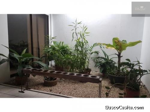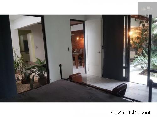 Esta maravillosa casa a la venta dispone de 2 dormitorios (el principal con walk-in-closet y sauna vertical incorporado a la ducha), cocina equipada con horno empotrado, techos altos e instalación para gas, sala amplia con cielo rasos altos, terraza, amplio jardin, jardin interno, 2 bodegas, parqueo para 2 carros, rancho para fiestas, cuarto de pilas, 1 pérgola en la entrada principal, jardines internos y mucha luz natural.