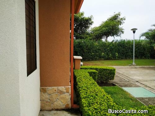 Cuenta con 3 dormitorios con closets y abanicos en techos, el principal con walk in closet y baño completo, techos altos con abanicos, cocina con muebles y extractor de grasa, desayunador, cuarto de lavado amplio, tanque de agua caliente para toda la casa, terraza, amplio patio, 2 puestos de estacionamiento, Cerca de áreas comunes para su disfrute( piscina para niños y adultos, rancho BBQ entre otras). La casa se encuentra en una zona de privacidad privilegiada ya que es la última casa, se encuentra totalmente remodelada, amplia y fresca. Se permite mascota pequeña y niños mayores de 11 años. $150 000 dólares