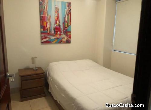 Completamente amoblado este apartamento en alquiler cuenta con 2 habitaciones, 1 baño, 1 parqueo bajo techoy vigilancia en la urbanización donde se encuentra el inmueble.
