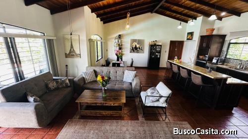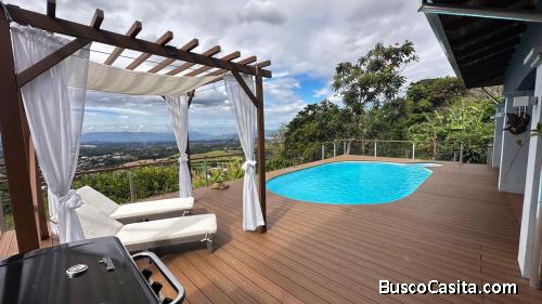 DESCRIPCIÓN DETALLADA: ubicada en una zona tranquila y privilegiada de San Pedro de Poás, a 1.084 metros sobre el nivel del mar, esta propiedad ofrece un agradable clima primaveral durante todo el año y una vista panorámica al Valle Central. Su entorno natural y residencial brinda privacidad, serenidad y una alta calidad de vida, ideal para quienes buscan tranquilidad sin alejarse de los principales centros urbanos. El terreno presenta topografía ligeramente inclinada y está rodeado de amplios jardines con vegetación tropical y árboles frutales, creando un ambiente fresco y armonioso. La finca se encuentra completamente cercada y equipada con portón automático, lo que proporciona seguridad y control de acceso. Entre sus áreas destacadas se encuentran la piscina climatizada y las terrazas exteriores, espacios perfectos para disfrutar del paisaje y del agradable clima de la zona durante todo el año. Cuenta con permiso de uso de suelo, el cual permite una superficie construida aproximada de hasta 400 m² distribuidos en tres plantas, ofreciendo una excelente oportunidad para ampliar la residencia o desarrollar un proyecto adicional. Se vende totalmente amueblada y con línea blanca incluida, y se ubica a corta distancia del centro de la zona, con fácil acceso a Alajuela, Grecia, el Aeropuerto Internacional Juan Santamaría y las playas del Pacífico Central, convirtiéndola en una excelente opción para vivir, descansar o invertir.